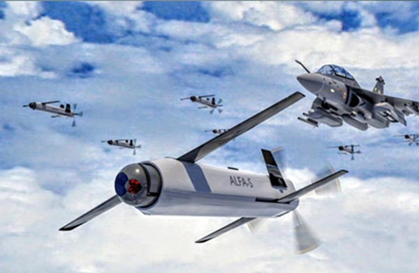 شکل (1): پروژه پرواز تجمعی 20 پهپاد ALFA-S توسط هند. پهپادها توسط محفظههای نصب شده روی یک جنگنده در آسمان رها میشوند.